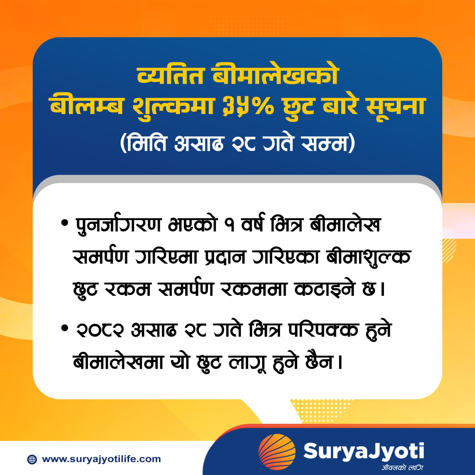 व्यतित बीमालेखको बीलम्ब शुल्कमा ३५% छुट बारे सूचना !!!